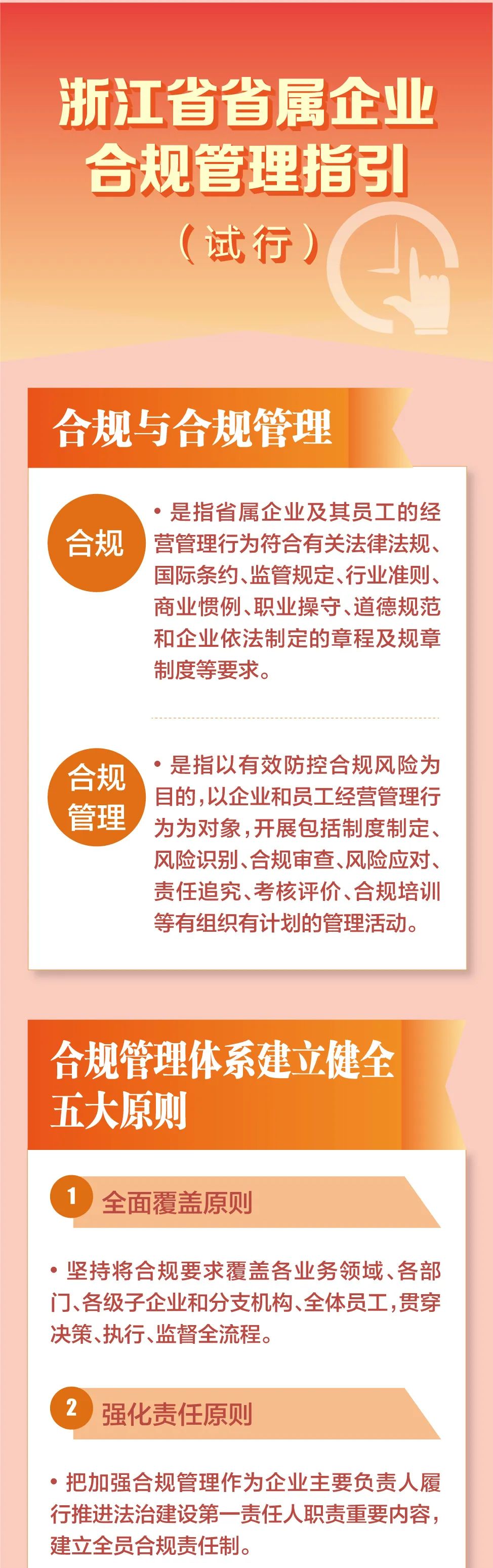 為推動(dòng)省屬企業(yè)全面加強(qiáng)合規(guī)管理,加快提升依法合規(guī)經(jīng)營(yíng)管理水平,進(jìn)一步加強(qiáng)法治國(guó)企建設(shè),保障企業(yè)持續(xù)穩(wěn)定健康發(fā)展,近日,浙江省國(guó)資委出臺(tái)了《浙江省省屬企業(yè)合規(guī)管理指引(試行)》(以下簡(jiǎn)稱《合規(guī)指引》)。