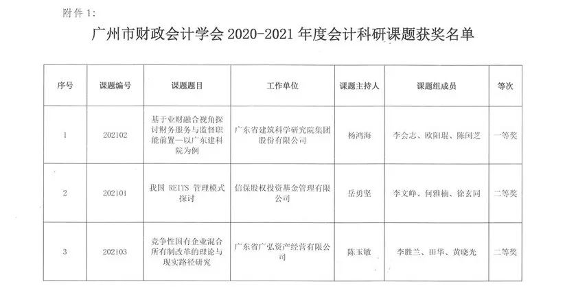 附件:1.廣州市2020-2021年度會計科研課題獲獎名單